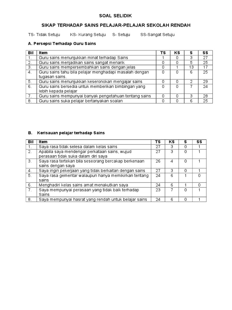 Borang Soal Selidik Sikap Terhadap Sains Pelajar Pdf