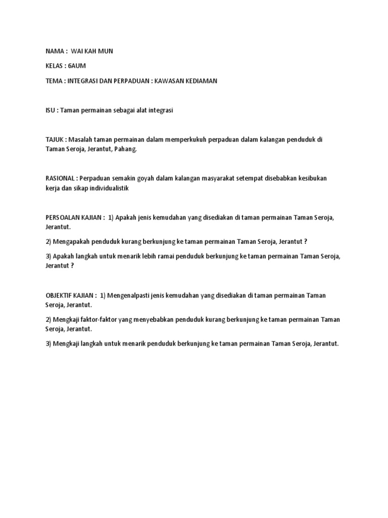 Soal selidik ini dikemukan untuk mendapatkan maklum balas. Soal selidik ini adalah bagi memenuhi keperluan Penilaian Berasaskan sekolah PBS untuk mata pelajaran pengajian am 9004Soal selidik ini bertujuan untuk mengkaji tentang persepsi masyarakat terhadap masalah sistem perparitan tersumbat dan implikasinya kepada penduduk di Taman Desa Jaya. BORANG SOAL SELIDIK PELAJAR TAJUK KAJIAN.